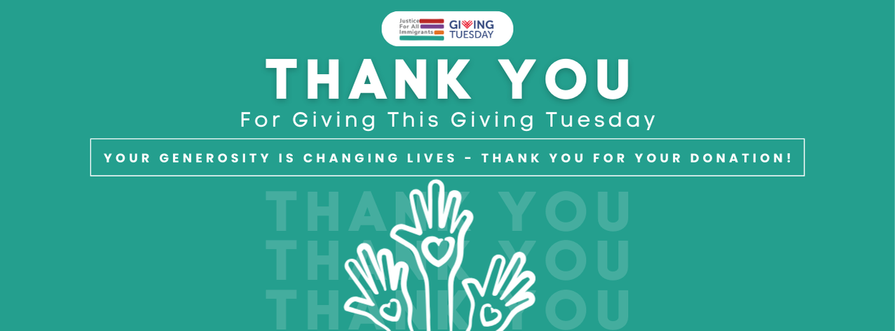 | | This Giving Tuesday, your generosity helped ensure immigrant families and survivors have access to free, high-quality legal services when they need it most. Every gift, large or small, made a meaningful difference. Thank you for standing with our clients and supporting JFAI’s mission. We are truly grateful for your compassion and partnership. |