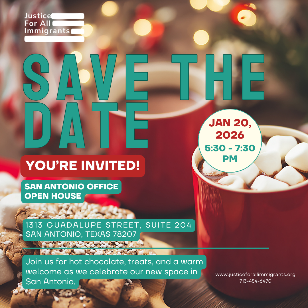 | | Justice for all Immigrants 2220 Broadway Street | Houston, Texas 77012 713-454-6470 | info@justiceforallimmigrants.org |