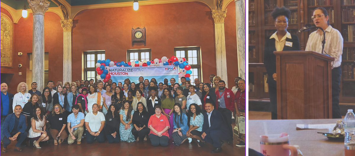 | | | JFAI Shares Citizenship Strategies at Convening On September 23, attorneys Esther Oni and Gabriela Lopez-Compean represented JFAI at the Greater Houston Citizenship Stakeholder meeting at the Julia Ideson Building. Esther led a table discussion on citizenship strategies, engaging with partners from across the country. “Collaborating with partners at NPNA reminds us that every success is part of a larger movement,” Esther emphasized. “Together, we can expand access to citizenship and help more families achieve stability and security.” The meeting highlighted opportunities for immigrant-serving organizations to share innovations, address challenges, and strengthen pathways to citizenship nationwide. For assistance with citizenship services, contact us at: 📧 info@justiceforallimmigrants.org 📞 713-454-6470 🌐 www.justiceforallimmigrants.org |
